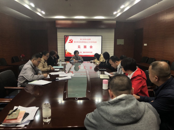会上,姚楠同志代表办公室、国际学院党支部作工作汇报。巡察组蒋红同志代表第一巡察组作巡察工作总体安排及工作要求。