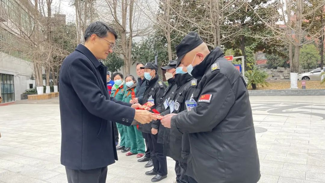 慰问中,宋广强强调,2022年我校荣获省级安全稳定先进集体,这跟大家的努力付出是密不可分的。2023年是实施“十四五”规划承上启下的关键之年,我们将把党的二十大精神深入贯彻落实到新一年学校各项工作之中,持续深化平安校园、和谐校园、文明校园的建设。