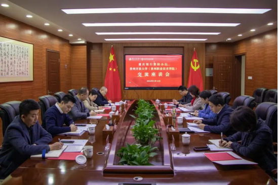 2024年3月14日上午,重庆银行贵阳分行党委书记、行长朱雷一行到我校交流座谈。学校党委书记令狐彩桃及各处室负责人参加座谈。
