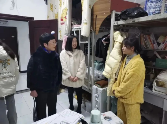丝丝关爱,浸满心脾。2月28日,学校党委书记令狐彩桃,党委委员、纪委书记骆最勇,党委委员、党委组织部部长张仁俊一行深入学生社区,走进学生食堂、学生宿舍,看望慰问返校学生,指导督查开学学生工作。