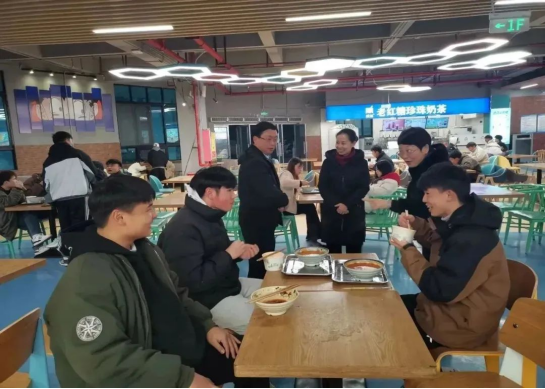 正值晚餐时刻,学生第一食堂人流熙攘、热闹非凡。令狐彩桃与同学们同桌而坐,认真听取同学们对饭菜品种、质量、价格以及卫生服务等的意见,并与同学们一起用餐、谈心。“哪家餐馆味道最好?”“卫生条件怎么样?价格贵不贵?”一句句贴心的话语,熨帖着同学们的心扉。现场欢声笑语、暖意融融。