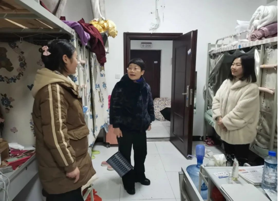 近期天气急剧降温,令狐彩桃细心叮嘱同学们要注意防寒保暖,提高安全意识。她强调,楼长、层长、寝室长“三长”责任要担起来,全力维护温馨宜居的宿舍环境,共创文明和谐的宿舍文化。她一再强调安全用电的重要性,希望同学们提升安全意识和防范能力,离开宿舍关闭电源,任何时候都不能使用违规电器,共同维护校园安全稳定。
