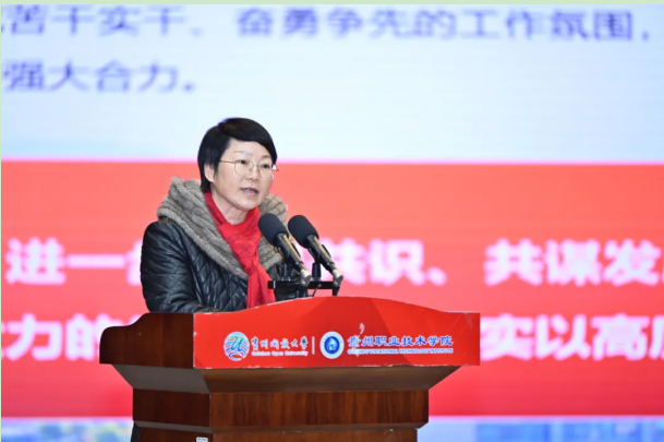 党委书记令狐彩桃作总结讲话时充分肯定了过去一年所做的工作和取得的成绩,从“明底蕴,责任担当引领行动之变”“观大势,提升认识引领未来之变”“出实招,创新方式引领质效之变”三个方面分析了面临的挑战和机遇,并以“干在实处”为总领,对推动党建走在前列提出明确要求,对开放教育提质增量、职业教育提质创优、继续教育提质扩面作出具体部署,鼓励大家解放思想、深化改革,求真务实、真抓实干,以人为本、爱校如家。令狐彩桃强调,站在新的起点,全校上下要认真研究形势、把握形势,坚持干在实处、走在前列,努力在危机中育先机、于变局中开新局,切实肩负起建设人民满意的新型大学的历史重任,为贵州特色教育强省和把学校建设成为贵州有特色、全国有影响的高质量新型本科大学贡献更大力量。