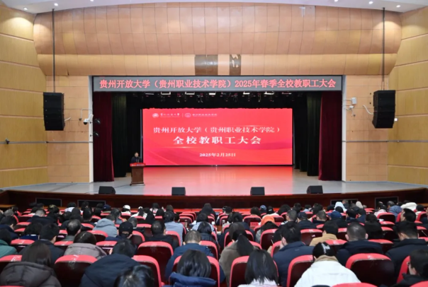 一元复始万象新,砥砺前行正当时。2025年2月25日上午,学校2025年春季学期工作部署会在云潭南路校区大礼堂举行。全体在家校领导出席会议,各市州开放大学主要领导、全校教职工参加会议,会议由党委副书记罗玲龙主持。