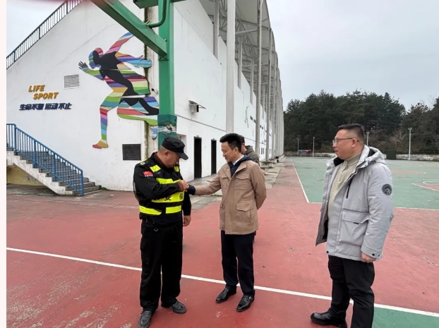 在大门值守中心,校领导与安保人员亲切交谈,仔细询问节日期间校门管理、人员进出查验等情况,感谢大家常年坚守在校门第一线,为校园安全把好第一道关口。在监控中心,校领导通过实时画面查看校园各重点部位的运行情况,强调要“眼睛亮、反应快、处置准”,确保校园安全无死角、无盲区。在消防控制中心,校领导详细了解春节期间消防巡查安排,令狐彩桃书记重点询问了大松山、小松山公园的森林防火工作部署,她指出春节期间天干物燥,加之祭扫活动增多,森林防火形势严峻,要加大巡查频次,严控火源进山,确保万无一失。在体育场馆,罗勇校长对值班人员的认真负责给予肯定,强调要做好节日期间场馆管理,同时要着眼长远,科学规划场馆建设,为师生提供更优质的运动环境。