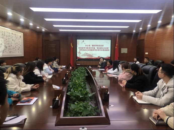 为了贯彻落实党史学习教育中“我为群众办实事”工作,切实加强与结对助学帮扶对象的联系,11月11日,办公室、国际学院党支部针对结对助学学生提出的英语提高难、找不到复习方法等问题在行政楼6楼会议室为打算参加专升本考试的学生特别开展了一堂专升本英语考试辅导课。