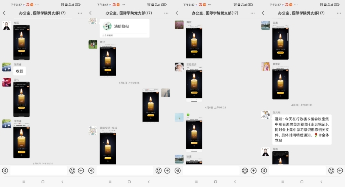 在“清明祭扫”微信公众号平台“英雄纪念馆”,支部党员纷纷为人民英雄点亮蜡烛,献上鲜花,告慰亡者、致敬生者。