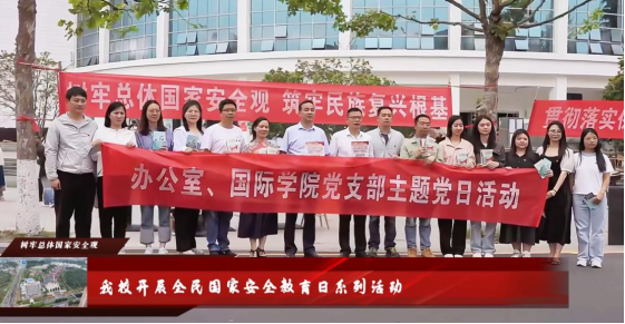 为广泛动员全校师生树牢总体国家安全观,提升广大师生的国家安全保密意识和法治观念,增强防范和抵御安全风险的能力,全力营造和谐稳定的校园环境。4月15日,在第九个“全民国家安全教育日”之际,办公室国际学院党支部联合商业与贸易学院会计法律党支部开展“全民国家安全教育日”系列宣传教育活动。