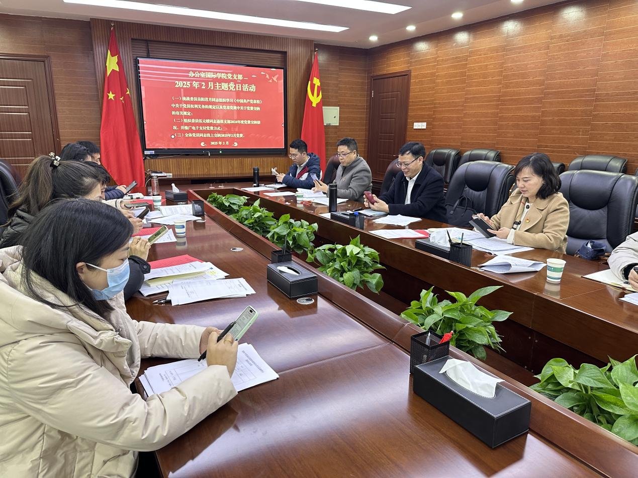 为深入学习贯彻党的二十大精神,推动党建工作与信息技术深度融合,提升党员教育管理服务的智能化、便捷化水平,办公室国际学院党支部于2月20日组织开展了“互联网+交纳党费——新时代党员的新作为”主题党日活动。党支部全体党员参加。