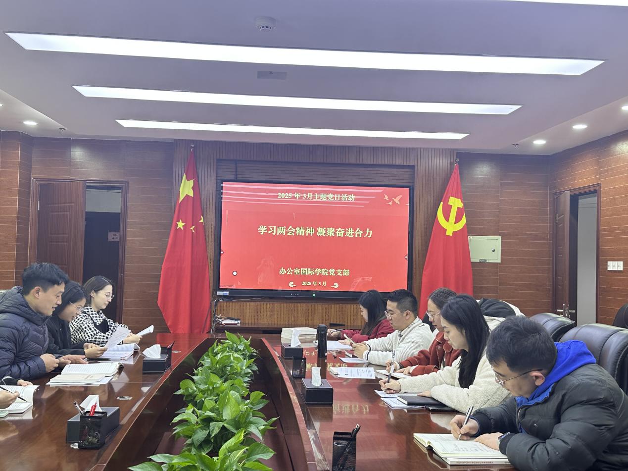 办公室国际学院党支部开展“学习两会精神 凝聚奋进合力”主题党日活动